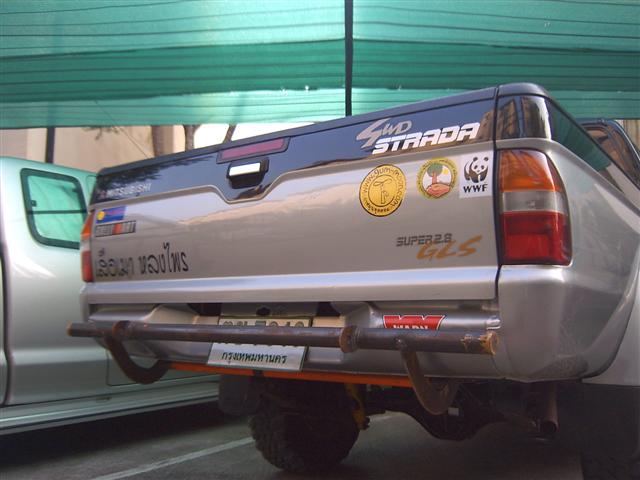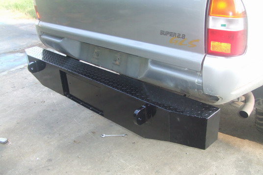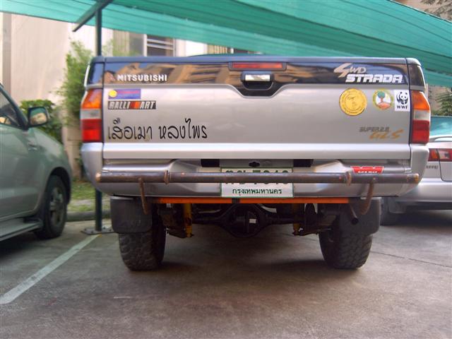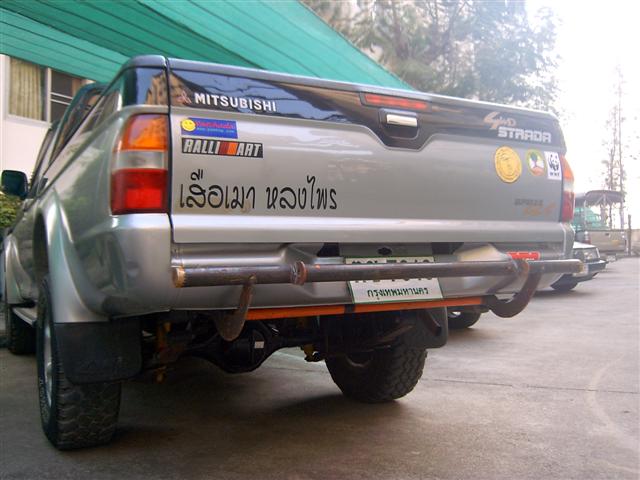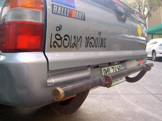 ทำแบบเล่นๆ ไม่ได้จริงจังอะไร อาจจะไม่สวยงามเหมือนที่เขาทำขายกันทั่วไป แต่สามารถเพิ่มเติมใส่ออฟชั่นได้เช่นบานสวิงแขวนยางอะไหล่ และอื่นๆ ตามแต่ไอเดียของเรา รูปแบบของกันชนนี้สามารถเปลี่ยนแปลงรูปร่างของเราได้ เช่น โค้งมน เจาะรู