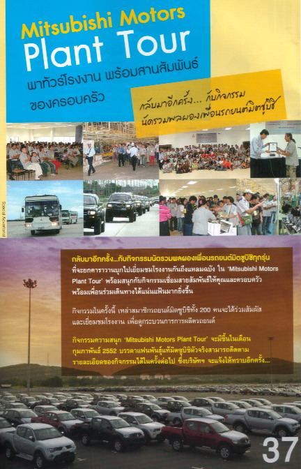 กลับมาอีกครั้ง.....กับกิจกรรมนัดรวมพลผองเพื่อนรถยนต์มิตซูบิชิทุกรุ่น ที่จะยกคาราวานบุกไปเยี่ยมชมโรงงานกันถึงแหลมฉบัง ใน " Mitsubishi Motors Plant Tour " พร้อมสนุกกับกิจกรรมเชื่อมสัมพันธ์ให้ครอบครัวพร้อมเพื่อนร่วมเดิน