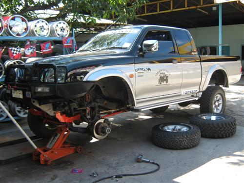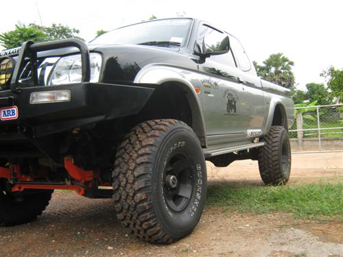 ผมใส่ชุดยก5นิ้วและเปลี่ยนยางจาก 31 เป็น 33 x 12.50 R 15 LT หลังจากเปลี่ยนยางแล้วเวลาออกตัว รถสั่นสะท้านมากก็เลยแก้ปัญหาเบื้องต้นด้วยการถอดแหนบบรรทุกออกทั้ง 2 ข้าง ก็ดีขึ้นมานิดหน่อย แต่อาการสั่นไม่หายขาด