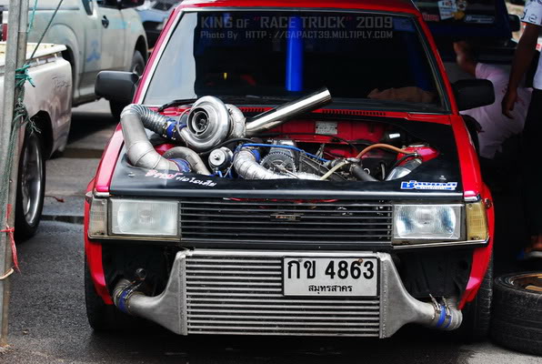 คำตอบที่ 1687 ท่านikkiwครับ บอกได้คำเดียว โหด (อีก2คำแล้วกัน)สุดๆ สงกะสัยว่าติดกันชนหรือเปล่า เคยไม่ใส่กันชนเหมือนกันครับปล่อยไว้แบบนี้ เจอตำรวจตั้งด่านเรียกตรวจ เขาถามว่ารถร้อนเหรอใส่หม้อน้ำตังสองใบ(หม้อน้ำก็หม้อน้ำไม่เถียงคราบ.......)