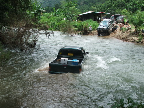 ที่เงียบหายไป ไม่ใช่อะไรหรอกครับ............ พาเจ้า Blue-Tiger ผมไปหาหมอครับ ผ่านมาหลายโรงแล้วครับ ทั้งเอกชน และคลีนิคส่วนตัวครับ เริ่มตั้งแต่ไปร้านช่างนิคไดนาโม จัดการถอดรื้อ เอาชุดคอนโทรลทั้งหมดในรถที่มีในระดับไม่เกินสวิชกระจก มาเป่าไล่น้ำและเป่าลมร้อน เพราะขาข้ามคลองหนึ่งไปคลองสอง รถติดหล่มกลางคลองดิ้นไม่ออกแถมเป็นช่วงทวนน้ำ กระแสน้ำไหลแรงมากๆในระดับไฟหน้ารถเลย ติดอยู่นาน เลยหมดลมหายใจ เพราะรถเดิมๆทั้งหมดเลยครับ น้ำจึงค่อยๆขึ้นมาถึงระดับสวิชกระจกเลยครับ และพักใหญ่พี่ๆก็เข้ากู้ภัยขึ้นไปโชคดีจัง ขากลับโชคดีแฮะ น้ำไหลแรงกว่าขามาและระดับน้ำก็สูงกว่ามาก คิดว่าน่าจะเป็นเพราะเข้าไลน์ดีและเป็นช่วงทวนน้ำครับ เลยรอดตัวขึ้นไปได้โดยดี หลังจากนั้นเมื่อกลับเข้าถึงบ้านที่พัก-ก็ต้องเอาทุกสิ่งในรถออกมาตากลมหมดเลยครับ คืนนั้นพื้นบ้านเล๊ะไปหมด ดูไม่จืดเลย อย่างที่บอก หากแม่บ้านไม่ได้ไปด้วย คงจะไม่เข้าใจ และก็เป็นเช่นนั้นจริงๆ หูบานตลอดเลยครับ