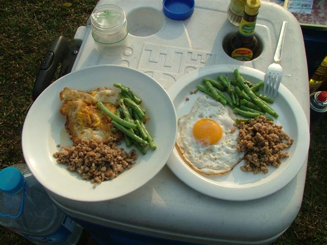 ออกจาก กทม ตอน บ่าย กว่าจะถึงก็มืดดีที่ซื้อเสบียงติดมา..555 ไก่ป๊อป แต่พอกางเตนท์เสร็จสักพักก็มีเจ้าหน้าที่อุทยานมาถามว่าอยากกินไรไหม ผมไปวันธรรมดาร้านอาหารไม่เปิดแม่ครัวไปทำครัวด้านหลังสั่งได้ ภรรยาอยากกินน้ำพริกปลาทูขึ้นมาเลยให้จัดมา น้ำพริก 1 ถุง ผัก สด 1 ถุง ข้าวสวย 2 ถุง 50 บาท อิ่มสบาย..
