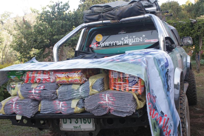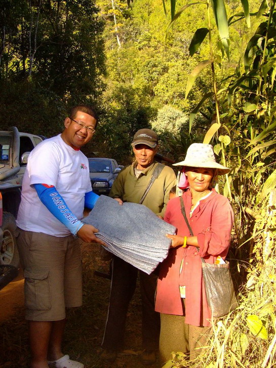 ก่อนอื่นต้องขอกล่าวขอบคุณทุกๆท่าน ที่ให้การสนับสนุนโครงการโดยช่วยร่วมบริจาคทุนทรัพย์ เพื่อจัดหาผ้าห่มจำนวนทั้งหมดมากกว่า 400 ผืน และจัดหาขนมให้เด็ก ๆ บนดอย ได้แบ่งปันความอบอุ่นทั้งทางกาย และจิตรใจให้พี่น้องบนยอดดอย โครงการนี้คณะของเรายังได้แบ่งปัน ความอบอุ่นไปยังพี่น้องทหาร และ ตำรวจตระเวณชายแดนด้วย ขอขอบคุณเป็นพิเศษสำหรับเพื่อน ๆ พี่-น้อง พนักงาน จากบริษัท Mitsubishi Motors ( Thailand ) ที่ช่วยร่วมใจจัดหา และสนับสนุนโครงการนี้