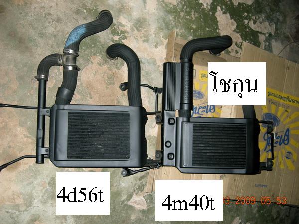 รุ่นนี้ครับที่นิยมนำมาติดกับเครื่อง 4d56 กับ 4m40 บ้านเราเนื่องจาก ติดตั้งได้พอดีกับช่องลมสคูปของเรา ลมลงผ่านได้เต็มหน้า แผงอินเตอร์ใหญ่สุดในรุ่นครับ เวลาเจาะจมูกแล้วใส่ยางหีบเพลง(บังคับลม) ลมจะไหลลงสู่อินเตอร์แบบพอดิบพอดีครับครับและสวยงามลงตัวครับ ตัวซ้ายมาจากเครื่อง 4d56t รุ่นใหม่ครับ และตัวขวามือของเครื่อง 4m40t จากปาเจโร่โชกุนครับหายากและแพงด้วยซิ แต่ตัวที่เห็นนั้นพ่นสีดำไว้ครับ ทั้งสองตัวนี้แผงระบาบความร้อนเท่ากัน พัดลมเหมือนกัน ต่างกันแค่ฝาครอบหน้า และตรงท่อกักอากาศด้านหน้านิดหน่อยครับ ใช้ทดแทนกันได้เลยครับ ส่วนขาโครงยึดหน้าไม่เหมือนกันแต่เวลาเราเอามาใช้ต้องตัดต่อขานิดหน่อยอยู่แล้วด้านหลังเหมือนกันครับ 555