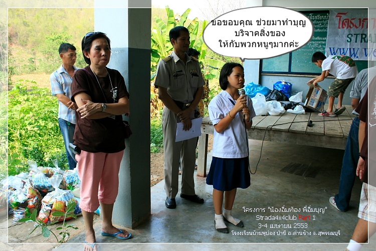 โครงการน้องอิ่มท้อง พี่อิ่มบุญ ซึ่งได้รับความร่วมมือจากเพื่อนๆพี่ๆน้องๆStrada4x4clubและผู้สนับสนุนจากที่ต่างๆมากมายที่ร่วมกันทำบุญ บริจาคทั้งเงินรวมถึงสิ่งของ แล้วยังมาร่วมกันทั้งแรงกาย แรงใจ เพื่อให้โครงการนี้บรรลุถึงจุดมุ่งหมาย ตามที่เราคาดหวังกันเอาไว้