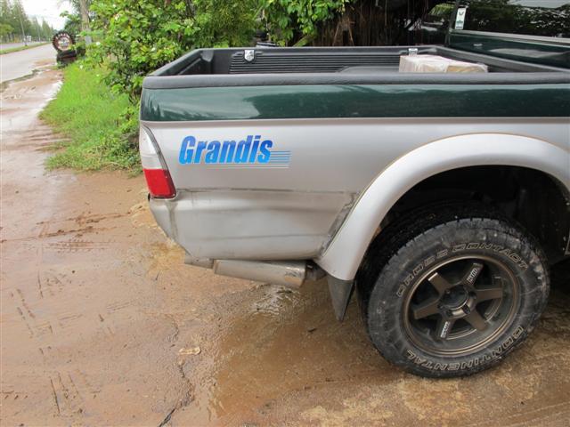 ลงจากรถดูความเสียหายอีกรอบ อ้าว!!! ป้ายทะเบียนหลังหายไป เดินกลับไปหาหลายรอบเพราะมีเศษชิ้นส่วนของรถคันอื่นๆตกอยู่มากมาย พอเจอป้ายทะเบียนก็เข้าไปพักใน Rest area