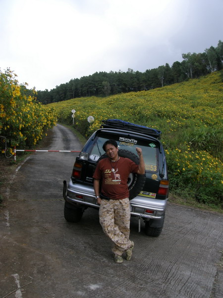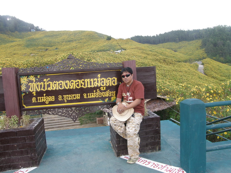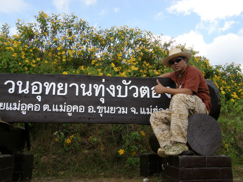 เช้าวันใหม่วันนี้สดชื่นกว่าเมื่อวานเนื่องจาก เมื่อวานขับรถด้วยพลัง .357 ตั้ง2ขวด ขับได้ 1000 โลได้มั้ง วันนี้เอาใหม่เป็นตัวของตัวเอง ตื่นกันแต่เช้า ตีห้า ,มุ่งหน้าปางอุ๋ง ไปเสียเวลาต้องขึ้นสองแถวชาวบ้าน ไมเเต็มมันก็ไมออกด้วย รู้งี่ทำเรื่องขอเอารถเข้าไปตั่งแต่เมื่อคืนแล้วเสร็จจากปางอุ๋ง กลับเข้าตัวเมืองอีกรอบหาพลังงาน LPG กันหน่อยโอ้โห้ LPG อะไรกานว้า โครตะระแพง ลิตรละ 15.90 บาท สงสัยแพงที่สุดในเมืองไทย เติ่มเต็มถัง 58ลิตร ล่อไป 930 บาท แต่ว่าเมือมาดูเส้นทางทีเค้ามาส่งแก๊สแล้วก็ต้องเห็นใจครับ เมื่อพลังงานเต็มถัง แล้วขาดไม่ได้ครับต้องขึ้นไปกราบสิ่งศักดิ์สิทธ์ของที่นี่ พระธาตูดอยกองมู เสร็จจากนี่แล้วก็ถึงจุดประสงค์ของทริปนี้ครับ งานเทศกาลบัวตองบานที่ดอยแม่อุคอ เรามุ่งหน้ากลับมายัง อ.ขุนยวมอีกรอบเที่ยวนี้ต่องดนดอยกันหน่อยครับ มาถึงที่นี้แล้วหายเหนื่อยเลยครับ สวยครับ สมกับการวาดฝันไว้ครับ ถ่ายรูปที่ละลึกแล้วตัดสินใจกันต่อค่ำนี้จะนอนไหนดี เจ้แกเสนอม่อนกระทิง ม่อนกิ่วลม ดูแผนที่แล้วพอไหว เลยเร่งควบเจ้ากิมจิมา ถึงแม่สะเรียง 5 โมงกว่าแล้วเลยแวะหาอาหารเย็น ที่ 7/11 ออกจากแม่สะเรียงกะเวลาน่าจะไม่เกิน ทุ่ม ที่ไหนได้ล่อไปเกือบ 3 ทุ่มมีเราวิ่งอยู่คันเดี๋ย พอถงด่านเจ้าหน้าก็จะถามไปเรื่อยเส้นทาง OK ไม๊ เพื่อนบ้านเค้ารบกันผมวิ่งจะปลอดภัยไม๊ กว่าจะมาถึง อช.แม่เมยได้ แบบมีลุ้นตลอดทาง เจ้ากิมจิจะเกเรไม๊ มืดก็มืด เปลี่ยวก็เปลี่ยว และแล้วเราก็มาถึงอย่าปลอดภัย แต่ว่าที่นี่มีเรากางเต็นท์เพียงคนเดียวอีกแล้ว ไม่เป็นไรน่ายังไงก็มีเจ้าหน้าที่อยู่เป็นเพื่อน นอนใกล้ประตูทางเข้าก็แล้วกัน
