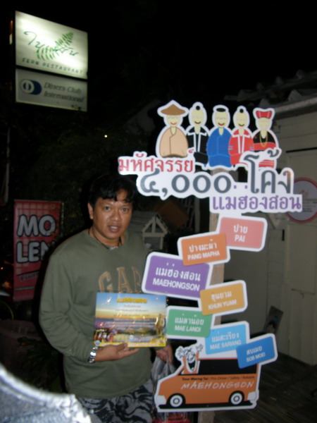 เราเริ่มล้อหมุนจาก ชลบุรี เวลาเที่ยงคืนวันศุกร์ 12/11/10 อากาศกำลังดีเลย วิ่งผ่านมาเรื่อยๆ ปทุมธานี อยุธยา อ่างทอง สิงห์บุรี ชัยนาท อุทัย นครสวรรค์ กำแพงเพชร ตาก แบบ ไม่รีบร้อนง่วงก็จอดพักสายตา 5-10นาที สัก 2 ครั้งเห็นจะได้ เรามาแวะกินข้าวเช้าก่อนเข้า อ.บ้านตาก เล็กน้อย และที่ขาดไม่ได้ครับ ต้องแวะไปนมัสการหลวงพ่อทันใจ ที่วัดบ้านตาก และเจดีย์ประจำปีเกิด ที่วัดนี้เช่นกัน ขอพรหลวงพ่อเสร็จ มุ่งหน้ากันต่อไปยัง อ.เถิน-ลี้- ดอยเต่า-ฮอด-แม่สะเรียง-แมลาน้อย แวะเที่ยว ชมความงดงามของ ผิกแร่ ในถ่ำ แก้วโกมล เสร็จจากถ่ำก็ตีเข้าแม่ฮ่องสอน โดยผ่านทางเข้า ดอยแม่อุคอ แต่คืนนี้เราเข้าไปนอนในแมฮ่องสอนดีกว่า แม่บ้านตั้งใจไปเดิน ช๊อปที่ถนนคนเดินตอนกลางคืนด้วย เราเลยถือโอกาสเลือกซื้อของที่ระลึกฝากน้องๆ ที่ office ด้วย กว่าจะได้นอนก็เกือบ 5 ทุ่มแล้ว
