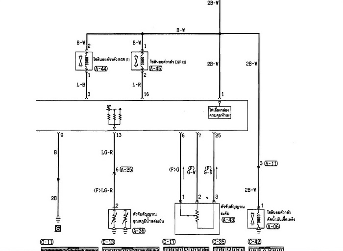 ดูที่ a43 ครับ เป็นความต้านทานแบบปรับค่าได้ แล้วนำแกนกลางต่อกับแกนคันเร่ง เมื่อเราเหยียบคันเร่ง ค่าความต้านทานจะเปลี่ยนไปตามเท้า เมื่อได้ค่าๆหนึ่งสัญญาณ ที่กล่อง ecu รับได้แล้วจึงมีคำสั่งให้ชุดโซลินอด์ยลม สั่งให้ egr วาล์วทำงาน ค่าที่ทำก็คงเป็นช่วงที่เหยียบแล้วควันดำ มากๆครับ