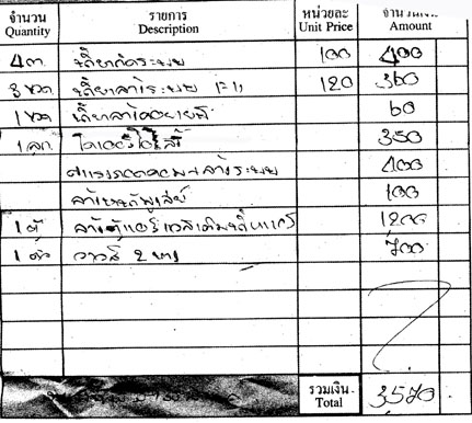 ไปทำมาแล้วครับ 3,570 บาท เขาบอกว่ารายการดังนี้ครัย 1. น้ำยากัดระบบ 4 ขวด (100X4) 400 บาท 2.น้ำยาล้างระบบ 3 ขวด (120x3) 360 บาท 3. ค่าน้ำยาล้างคอยเย็น 1 ขวด 60 บาท 4.ค่าไดเออร์โอลิงค็ 1 ลูก(ยกลูกเลย) 350 บาท 5.ค่าแรงถอดคอมแอร์+ล้างระบบ 400 บาท(ถอดกันชนหน้าออกหมดเลย) 6.ค่าเจียหน้ามูเล่(ครัสแอร์) 100 บาท 7.3ค่าล้างตู้แอร์ สองตู้ แวส+เติมน้ำยาแอร์ 1,200 บาท 8.ค่าวาวล์ 2 หาง 1 ตัว 700 บาท รวม 3,570 บาท แอร์เย็นครับ นั่งคนเดียว ตอนแดดร้อน จอดแช่ 30 นาที่ เย็นครับ ความร้อน เอาซ์ไซด์ 60-70 แอร์ยังเย็นอยู่ พรุ่งนี้ผมจะลองนั่ง 8 คน เด็ก 4 ผู้ใหญ่ 4 ได้ผลอย่างไรจะแจ้งให้ทราบ ตอนนี้เย็นแล้วครับ เฮอ!!!!!