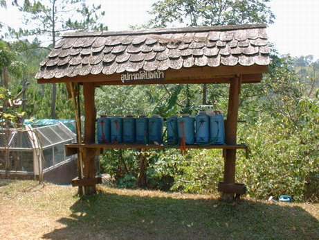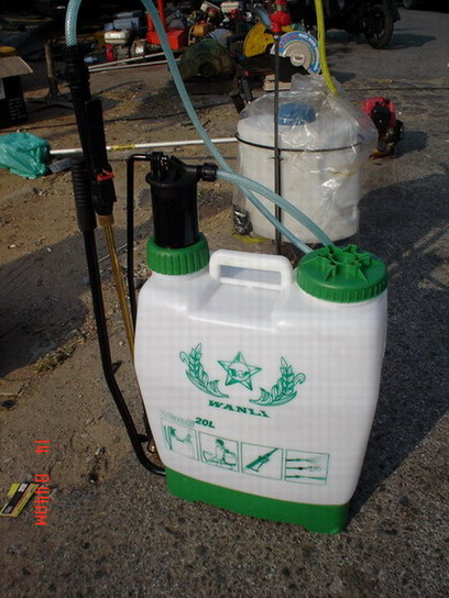 อุปกรณ์ที่ว่าก็จะเป็นถังน้ำแบบสพายหลัง เหมือนที่เกษตรกรใช้พ่นยาฆ่าหญ้า ไม้ตบไฟ อะไรประมาณนี้แหละครับ เดี๋ยวให้ ดาวเหนือ Post รูปให้ดู