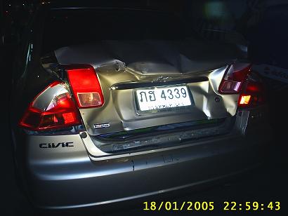 หลังจากไปยกบอดี้มาจากอู่ชาติไปทำธุระกลับมาถึงปากซอยบ้านก็เกิดอุบัติเหตุแท็กซี่พุ่งชนด้านข้างซ้ายของตัวรถได้ยินเสียงดัง ตึงๆ....2ทีลงมาจากรถยางด้านหลังซ้ายแตกประมาณ 4-5นิ้วนอกนั้นปกติแต่แท็กซี่เป็นไงดูเอาเอง(รูปแท็กซี่ไม่ค่อยชัดเพราะใช้มือถือถ่าย)