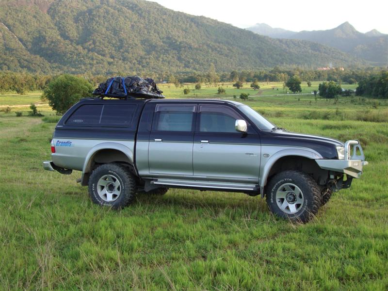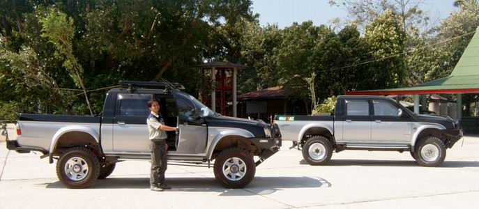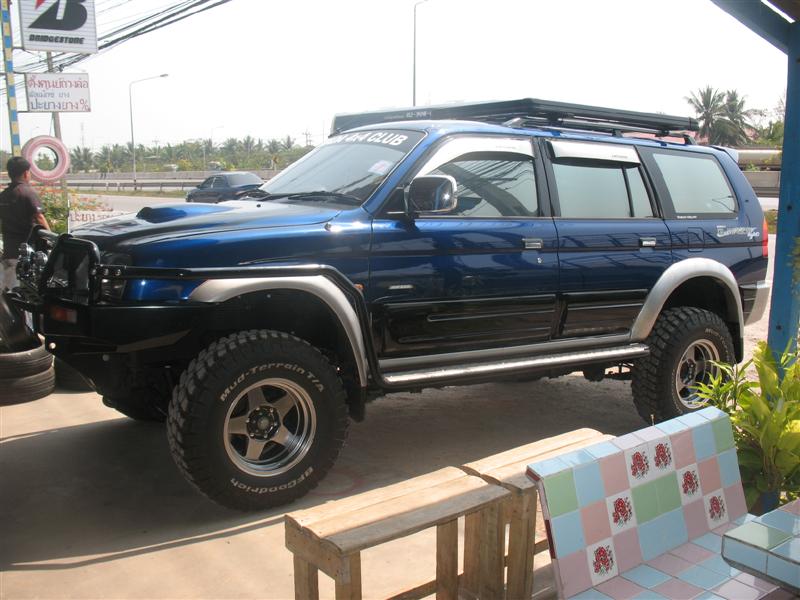 สิ่งที่ทำเพิ่มเติมไปกับช่วงล่างก็มี โช๊ค procomp ,กันสะบัด,ยาง bf mud 285/75/16 ,Max isuzu 16" ส่วน Torsion bar ยังไม่มีตังค์คับ....