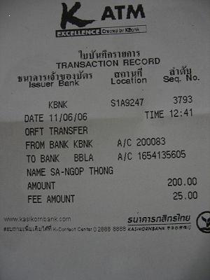 คำตอบที่ 68 ผมโอนเงินให้เรียบร้อยแล้วนะครับ 200 บาท ทาง ATM จากบัญชี ธ.กรุงศรีอยุธยา BAYA 1332134 วันที่ 9/06/06 เวลา 10.31 BAY 6144 ขอบคุณมากครับ รุ่งโรจน์ นิลทอง สำนักวิชาวิทยาศาสตร์ มหาวิทยาลัยแม่ฟ้าหลวง 333 หมู่ 1 ตำบลท่าสุด อำเภอเมือง จังหวัดเชียงราย 57100 โทรฯ 01-9157163