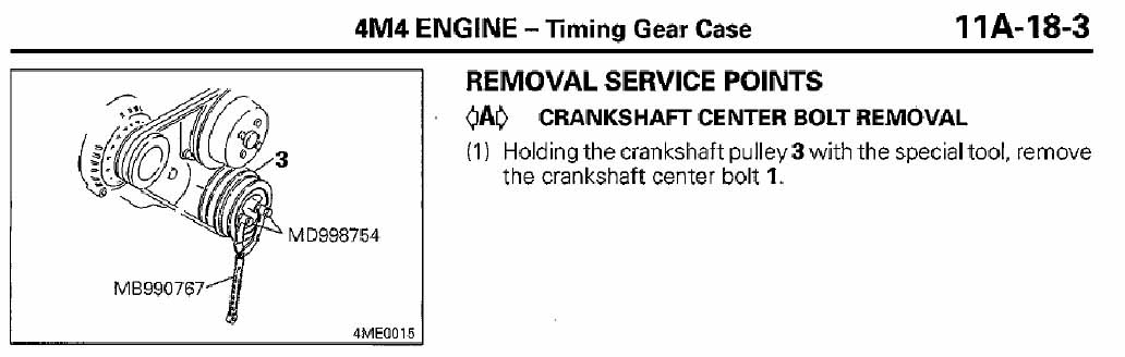 ถอดรังผึ้งหม้อน้ำออกก่อนเพื่อความปลอดภัย และมีที่ว่างพอทำงานสะดวก แล้วใช้ประแจบล็อคด้ามยาว (ที่ไม่ใช่ก่อกแก่ก) สวมเข้าหัวน็อต เอาด้าม ค้ำกับชัชซีรถไว้ แล้ว ก็ถึงขั้นตอนสุดท้ายคือ เอากุญแจรถบิดสตาร์ทรถเป็นจังหวะสั้นๆ ให้เครื่องยนต์หมุนซักครึ่งรอบ โดยไม่ทำให้เครื่องยนต์ติดเครื่องนะครับ แล้วก็ถอดออกตามปรกติ การเปลี่ยนสายพานราวลิ้น 4D56 มันมีแหวนรองเฟืองทั้งด้านนอกด้านในหลายชิ้นถ้าไม่ชำนาญก็เอาสีแต้มมาร์คตำแหน่องก่อนถอดไว้กันลืมก่อนนะครับ ใส่กลับผิดด้าน ผิดตัวไปจะยุ่งครับ การถอด ห้ามเอาค้อนเคาะที่เฟืองเพื่อถอดออก พลาดไปเฟืองมันเปราะ อาจจะบิ่นหรือแตก ได้ ให้ใช้ตัวดูดสามขา ค่อยๆดึงออก ตอนใส่สายพานก็ดูจุดมาร์คที่เครื่องยนต์ด้วยนะครับ ขอให้สำเร็จครับ แต่ถ้าเปลี่ยนใจเอาเข้าอู่ที่ไว้ใจได้ก็ง่ายขึ้นอีกครับ