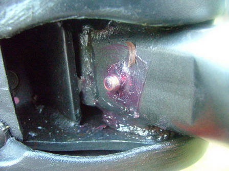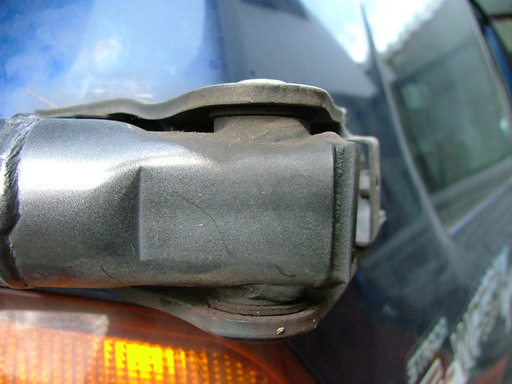 เจอแล้วครับ เป็นปัญหาอย่างคุณบุญสืบว่า จุดหมุนที่ใส่ยางอะไหล่หลวม ครับ ขยับขึ้นลงได้เล็กน้อย จะขันให้แน่นก็ไม่ได้ เพราะมันไม่มีน็อตใช้หมุดเชื่อมตายเลย...