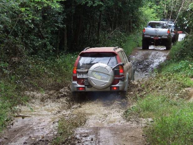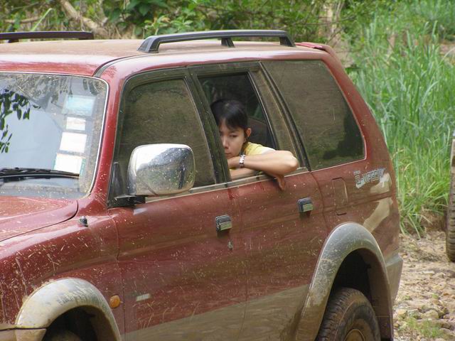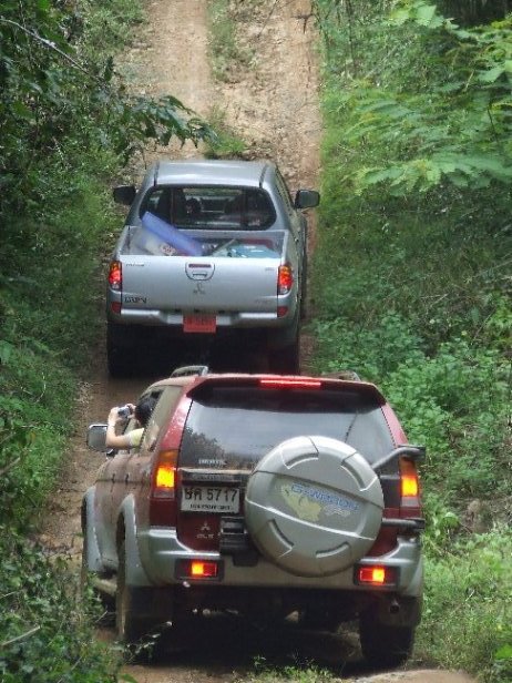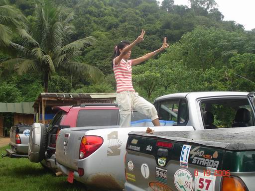 คันที่สาม เราได้นักขับ Off Road หญิงจากทีมลูกค้าสัมพันธ์ คุณ กุ้ง เธอควบม้าศึก Tritonขุมกำลัง 3200 cc.ยกสูงยางขนาด 33 นิ้ว มาพร้อมน้อง Jim ทีมงานคู่ใจ งานนี้เธอ เธอ ยังแสดงฝีมือปรุงรส อาหารป่าที่อร่อยที่สุดด้วย ชื่อเมนู ยำปลากระป๋อง อร่อยที่สุดในโลก เวลาเสริฟต้องเคียงคู่กับไข่เจียว 555555