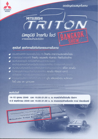 เชิญ พี่ๆน้องชาว Strada 4x4 ไปร่วมงานกันนะคะ สำหรับคนรักไทรทัน เรามีข้อเสนอพิเศษให้ในงาน กิจกรรมสนุกในงาน มากมาย การขับรถโชว์จิมคานาแบบหวาดเสียวสุดๆ โดยอั๋นศิริคุปต์ เมทะนี ร่วมสร้างสถิตถประหยัดน้ำมัน คอนเสริตสุดมัน จาก แบล็คเฮด โจอี้บอย บูดาเบลส นูโว สล็อตแมชชีน ลงทะเบียนร่วมสนุก รับของที่ระลึกฟรี แล้วพบกันค่ะ