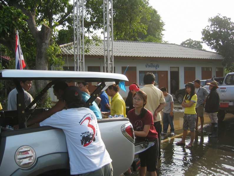 ขอขอบคุณ MMTH พี่ๆเพื่อนๆชาวStrada 4x4 พี่ป้อมพี่มาณพJUC และ เกียขาว รวมทั้งหมด21คัน รวมถึงผู้ร่วมบริจาคทุกท่าน ชาวบ้านที่นั่นเดือดร้อนมาก ต้องมาอาศัยรวมกันที่ศาลาวัด การเดินทางต้องใช้เรือซึ่งต้องใช้เวลาเกือบชั่วโมงเพื่อเดินทางไปเพื่อขึ้นฝั่ง สิ่งของที่พวกเรานำไปให้ไม่ว่าจะเป็น น้ำดื่ม อาหารแห้ง ของใช้จำเป็น รวมถึงอุปกรณ์ให้แสงสว่าง ล้วนมีประโยชน์สำหรับชาวบ้านที่นั่นเป็นอย่างยิ่ง