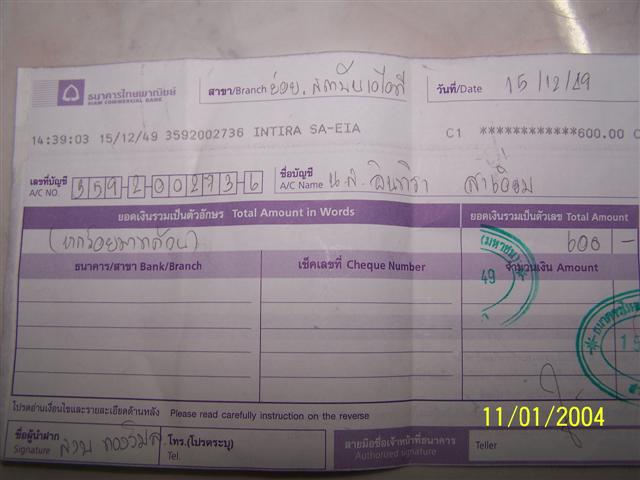 ชื่อบัญชี อินทิรา สาเอี่ยม