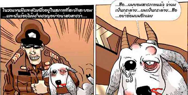 คำตอบที่ 3 และ ตำรวจไทย ก็คือสุดยอดตำรวจ เพราะเดินออกมาจากป่า พร้อมแพะ 1 ตัว ตาเขียว ตาปูด เพราะโดนซ้อมให้ยอมรับว่าให้เป็น "กระต่าย"