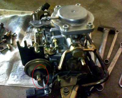 คำตอบที่ 1 ภาพนี้จากคู่มือซ่อม 2WD หน้า 55-37 ตรงที่วง สีแดงเรียกว่า Air Idle Up มีหน้าที่ เร่งเครื่องยนต์ เพื่อชดเชยรอบเครื่องเมื่อ คอมเพรสเซอร์แอร์ทำงาน โดยเมื่อมันทำงานจะดึงขาคันเร่ง การปรับ ให้ขันนัทเล็กๆที่อยู่ในวงกลมสีแดง