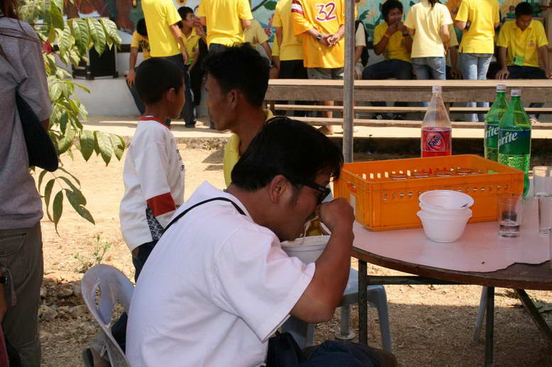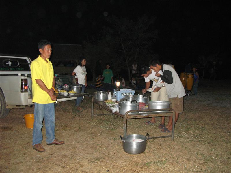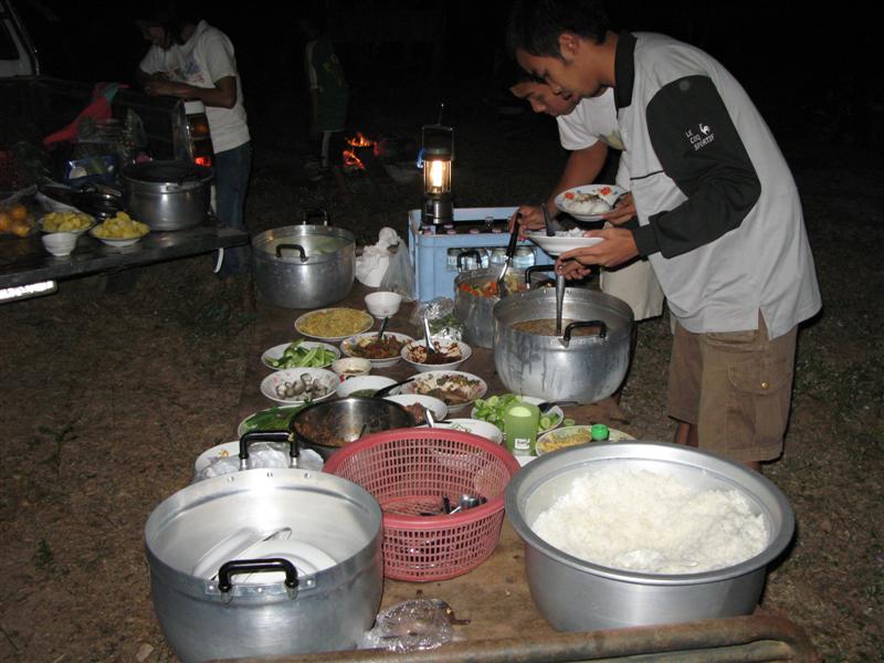 เนื่องจากเมื่อวานเราได้กินข้าวเย็นกันตอน 4 ทุ่ม วันนี้จึงได้รับความเมตตาจากแม่บ้านของดาบสมบัติ พร้อมเพื่อนแม่บ้านจากบ้านช่องอ้ายกลาง และแม่ครัวเอกที่ส่งเข้าประกวดโดย 01 มาทำกับข้าวรอโดยแยกกันตอนที่พวกเราขึ้นเขาปลาน้อย ปราดุก(กฏ)ว่าเข้าใจกันคลาดเคลื่อนนิดหน่อย ได้กินข้าวเย็นกันตอน 3 ทุ่ม....