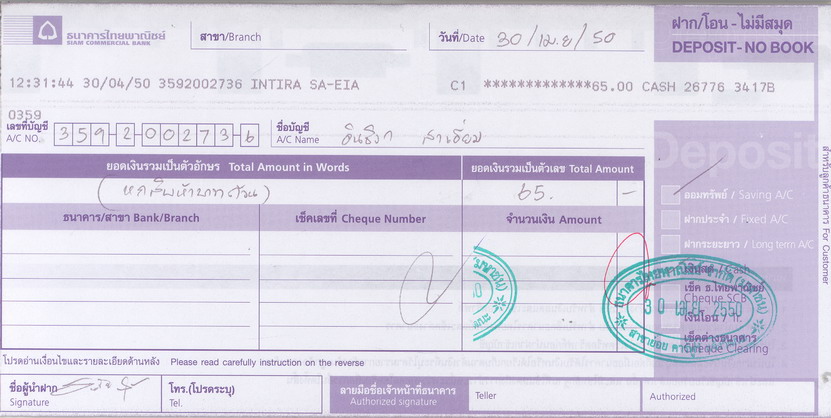 ชื่อบัญชี อินทิรา สาเอี่ยม