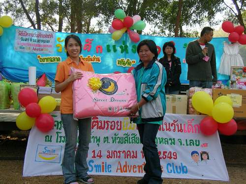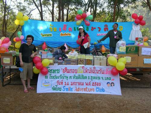 พวกเราเป็นกลุ่มเล็กๆในจังหวัดเลยจัดโครงการเติมรอยยิ้มให้น้องในวันเด็กมา 3 ครั้งแล้ว ปี 51 นี้เป็นครั้งที่ 4 จะไปที่ รร.บ้านห้วยลาด ต.อิปุ่ม อ.ด่านซ้าย จเลย มีพี่ๆสนใจจะร่วมทำบุญกับเราหรือเป่ลาครับ ถ้าสนใจก็ mail มานะครับ chompu_puka@yahoo.com