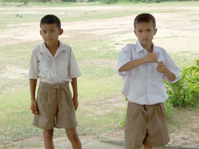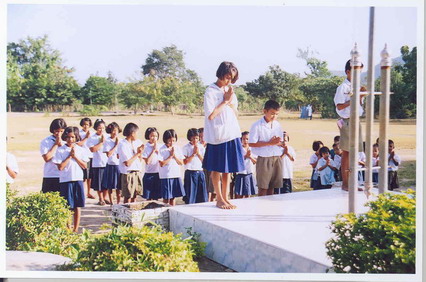 เด็กๆนักเรียนเคารพธงชาติในตอนเช้า