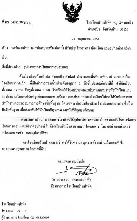 จาก ผอ.ประจวบ 210.246.158.254 ศุกร์, 26/9/2551 เวลา : 11:22  IP : 210.246.158.254
