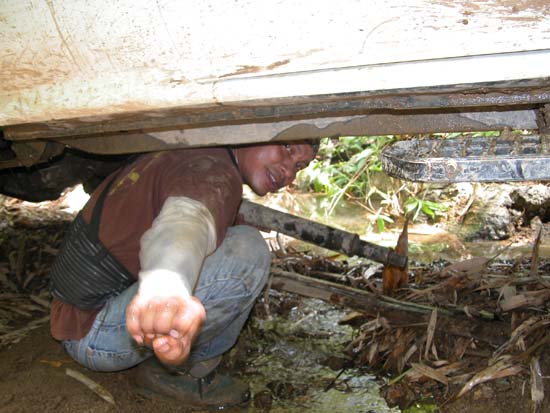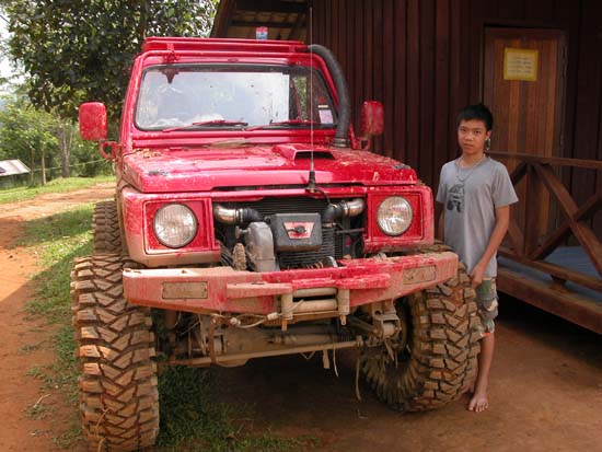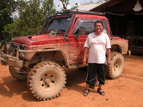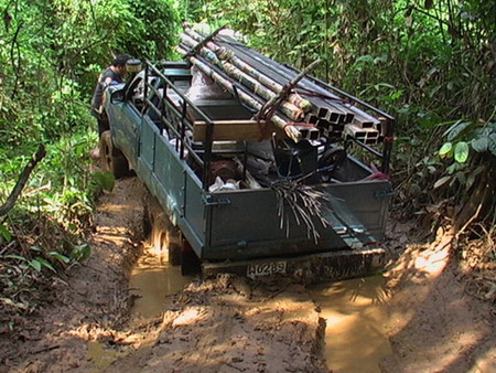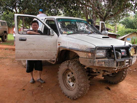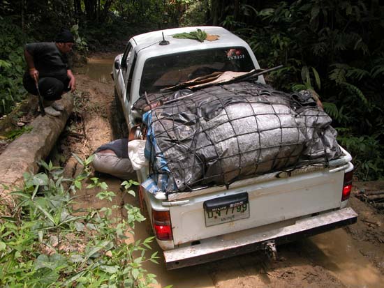 เราเดินทางถึง อ.สังขละบุรี ชาวบ้านบอกว่าฝนตกก่อนหน้านี้ 2วันที่แล้ว แต่มีรถช้าวบ้านเข้าออกกันอยู่ เราต้องหารถชาวบ้าน มาบรรทุกของเข้าพื้นที่ หาคันที่คิดค่าจ้างเราที่ถูกที่สุด ก็ได้คันนี้ครับ