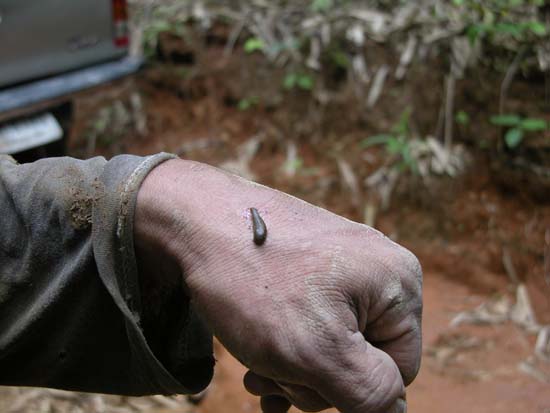 การเดินทางหน้าฝน เราจะมีเพื่อนรอต้อนรับเราตลอดทางที่เราต้องลงจากรถ กลางป่าดิบครับ