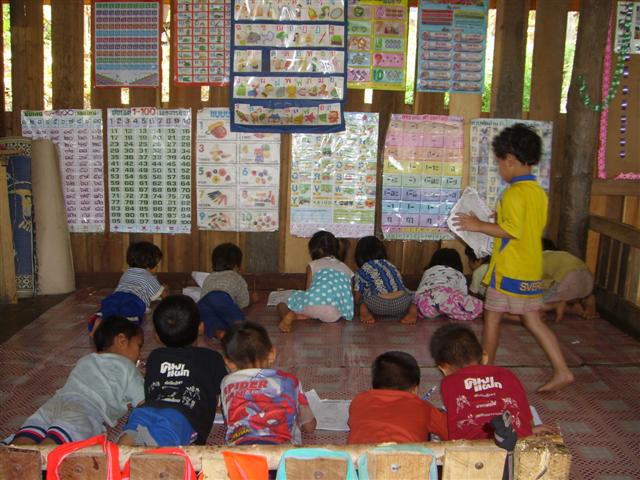 นี่คือห้องเรียนของน้องๆ มีอาคารเดียว ห้องเดียว เรียนครบทุกระดับชั้น
