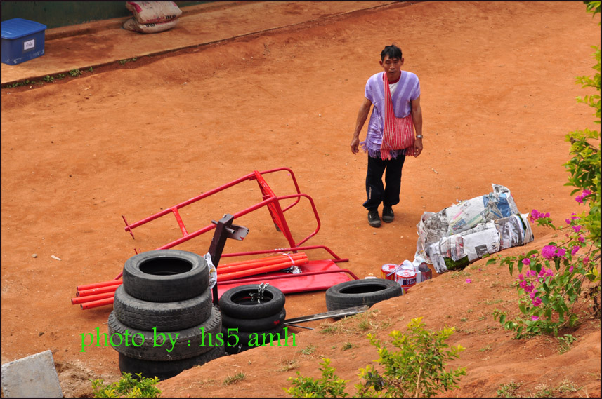 นัดถ่ายเทของที่นี่ครับเพราะไปโรงเรียนบ้านแม่ปุ๋นประมาณ 20 กว่ากิโลครับ ทางชันมากไปได้เฉพาะรถโฟว์วิลเท่านั้นครับ .......อุปกรณ์หนักรอรถปิกอัพครับ
