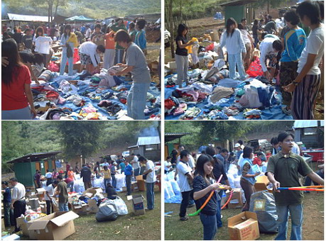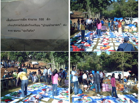 กำลังเตียมของให้นักเรียนเเละชาวบ้าน