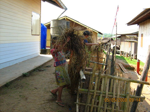 วิธีทำฝาครับ ต้องเตรียมไม้ไผ่ลำเล็กขนาดหัวแม่มือผู้ใหญ่ไว้สัก สามสิบท่อนล่วงหน้า