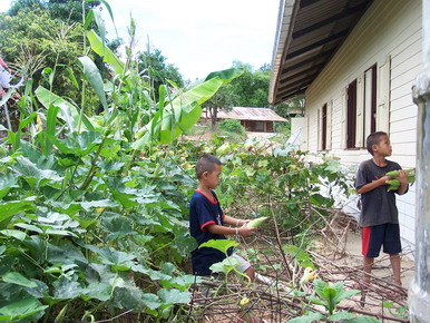ยอดเยี่ยมมากครับ ฝีมือของดรีมทีมตัวน้อยๆ และครูต้อม ที่เปลี่ยนรั้วลวดหนามมาเป็นรั้ว(มีผัก)กินได้ เดือนตุลาคม ที่เราจะเปลี่ยนบ้านพักครูแนน ให้เป็นบ้านดิน ผมคงมีผักกินสดๆแล้วละ ปลูกต่อไปนะครับ เอาใจช่วย
