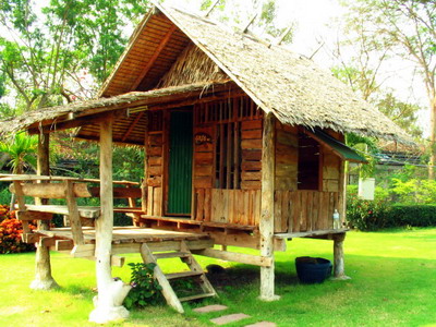 บ้านทรงนี้น่าจะเหมาะ สร้างค่อนข้างง่ายครับ เพียงเปลี่ยนจากฝาไม้ เป็นฝาดินผสมฟาง ฝากถามครูแนนด้วยว่าอยากเพิ่มเติมอะไรอีกครับ