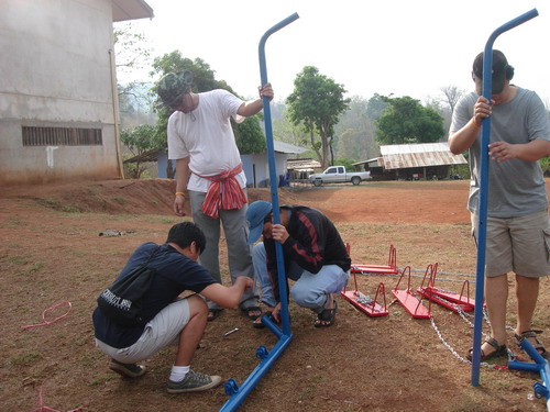 ช่วยพี่ๆ เขาประกอบเครื่องเล่นต่างๆ