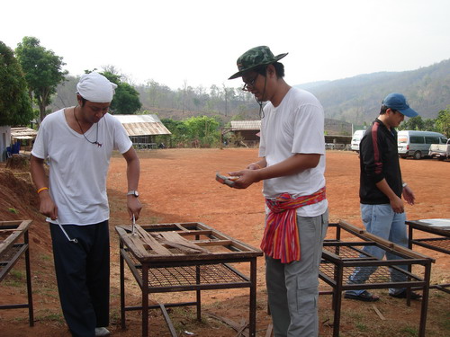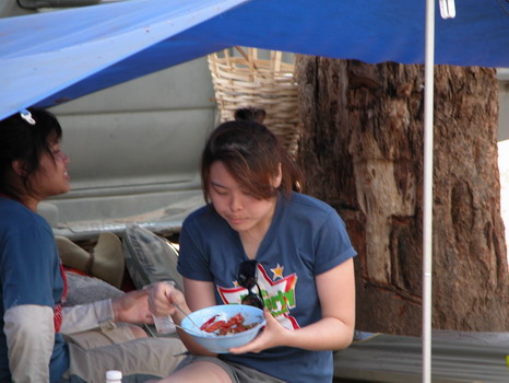 เตียมอาหารรอ คณะนำทีมโดย ครูรินแม่ครัวประจำ ร.ร. อร่อยมากครับ