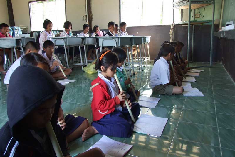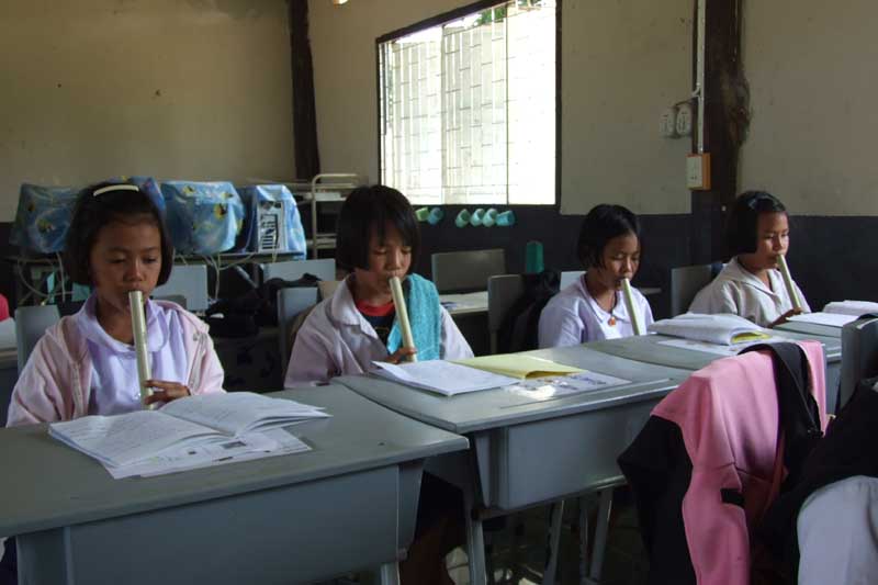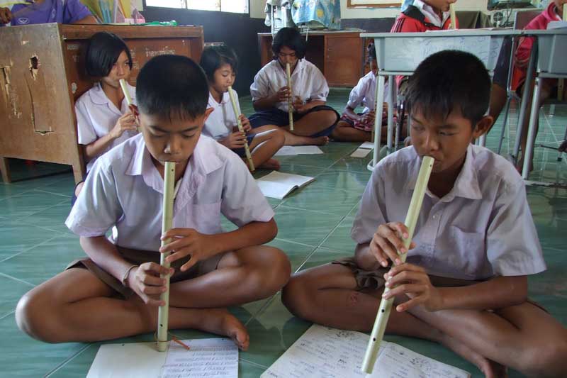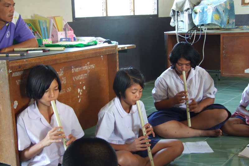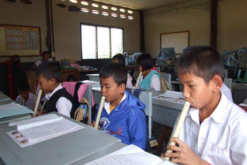นอกจากพยายามส่งเสริมเรื่องกีฬาและการอ่านแล้ว ทางโรงเรียนยังส่งเสริมเรื่องดนตรีด้วยนะครับ ตั้งแต่ ป.1-ป.6 เป่าขลุ่ยกันเสียงดังฟังชัดเลยครับ