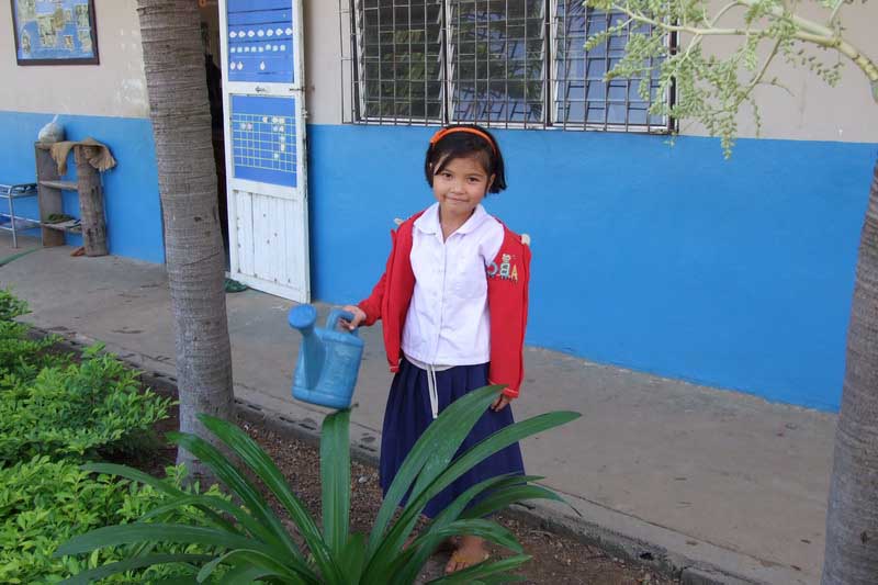 ก่อนกลับบ้านทุกวันเด็กก็ต้องช่วยกันทำความสะอาดบริเวณโรงเรียนและรดน้ำต้นไม้ รวมทั้งแปลงผักด้านหลังอาคาร