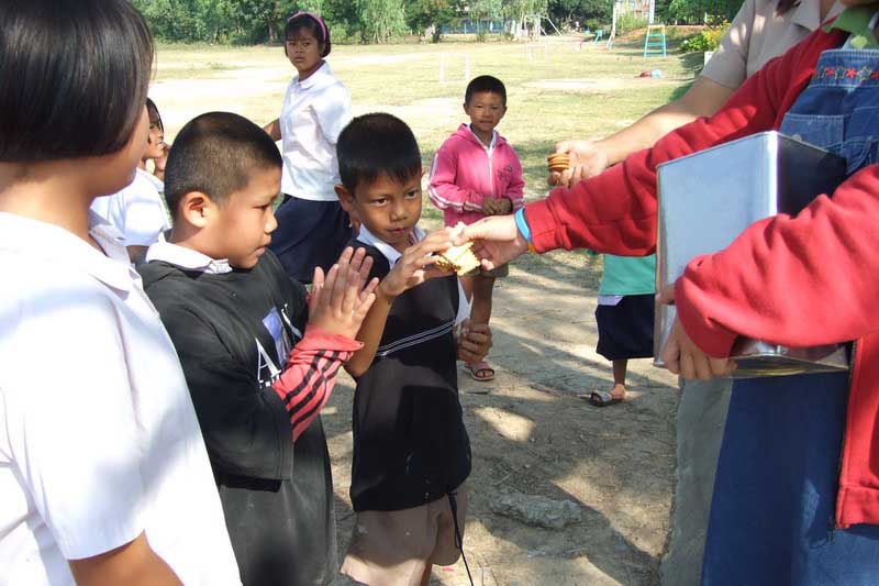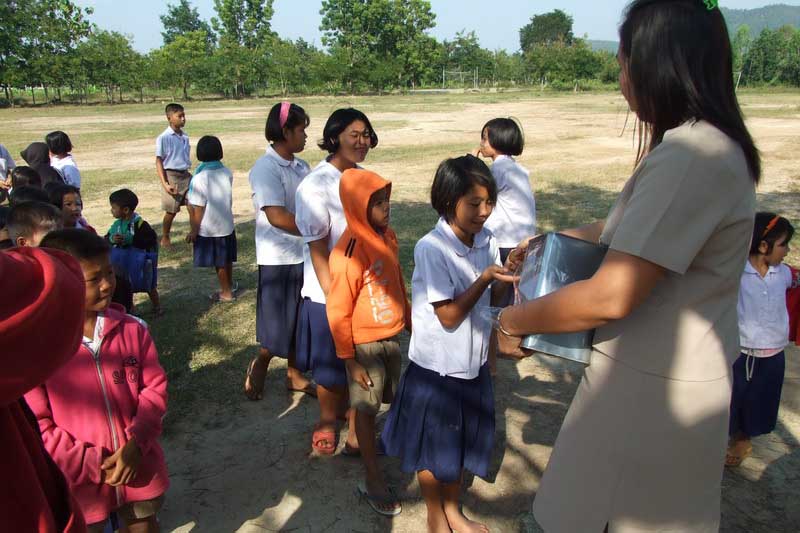 หยอดกระปุกวันละ 5 บาท 10 บาท พอครบปีก็มีเงินประมาณ 3,000 บาท สามารถช่วยค่าข้าวสารให้เด็กๆได้เกือบทั้งเทอมแล้วครับ (ข้าวขาว 5% ราคา 6 ร้อยกว่าบาท: 25กิโลกรัม) ลองหยอดกระปุกกันดูนะครับ