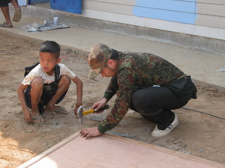 28 กพ. - 1 มีค. 52 ตีฝา ทาสี อาคารเรียน 2 หลัง + สร้างโต๊ะเรียน เก้าอี้