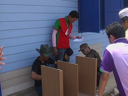 ทีมเรามาอิ่กแล้วครับ ดูคนเยอะครับให้กำลังใจ แต่ทำอยู่ 2คน กำลังประกอบโต๊ะคอมฯ