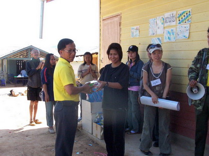 ครูหน่อย มอบสื่อให้แต่ละ ศศช. ผ่าน ผอ.ศบอ ไชยปราการ