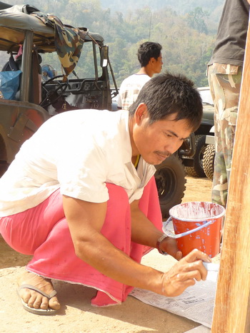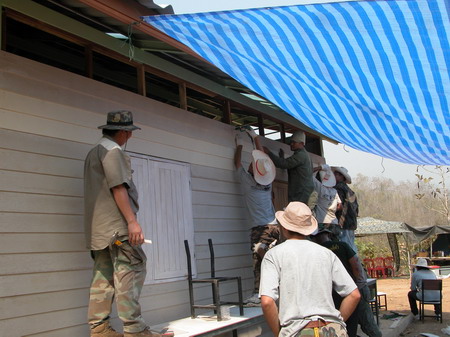 พวกชาวบ้านก็มาช่วยกันทาอาคารโรงเรียนด้วยครับ