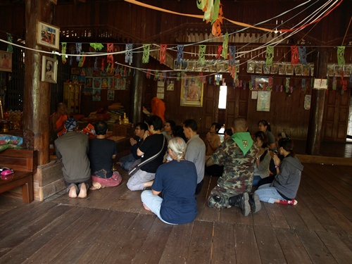 ก่อนไปทำทาน เราได้แวะทำบุญที่วัด