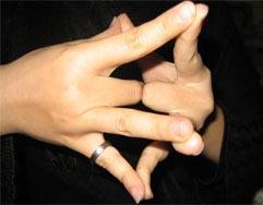 ลอง แบมือ 2 ข้าง เข้าหากัน แล้ว งอนิ้วกลางลง เอา หลังนิ้วกลาง ทั้ง 2 ข้าง มาชนกัน